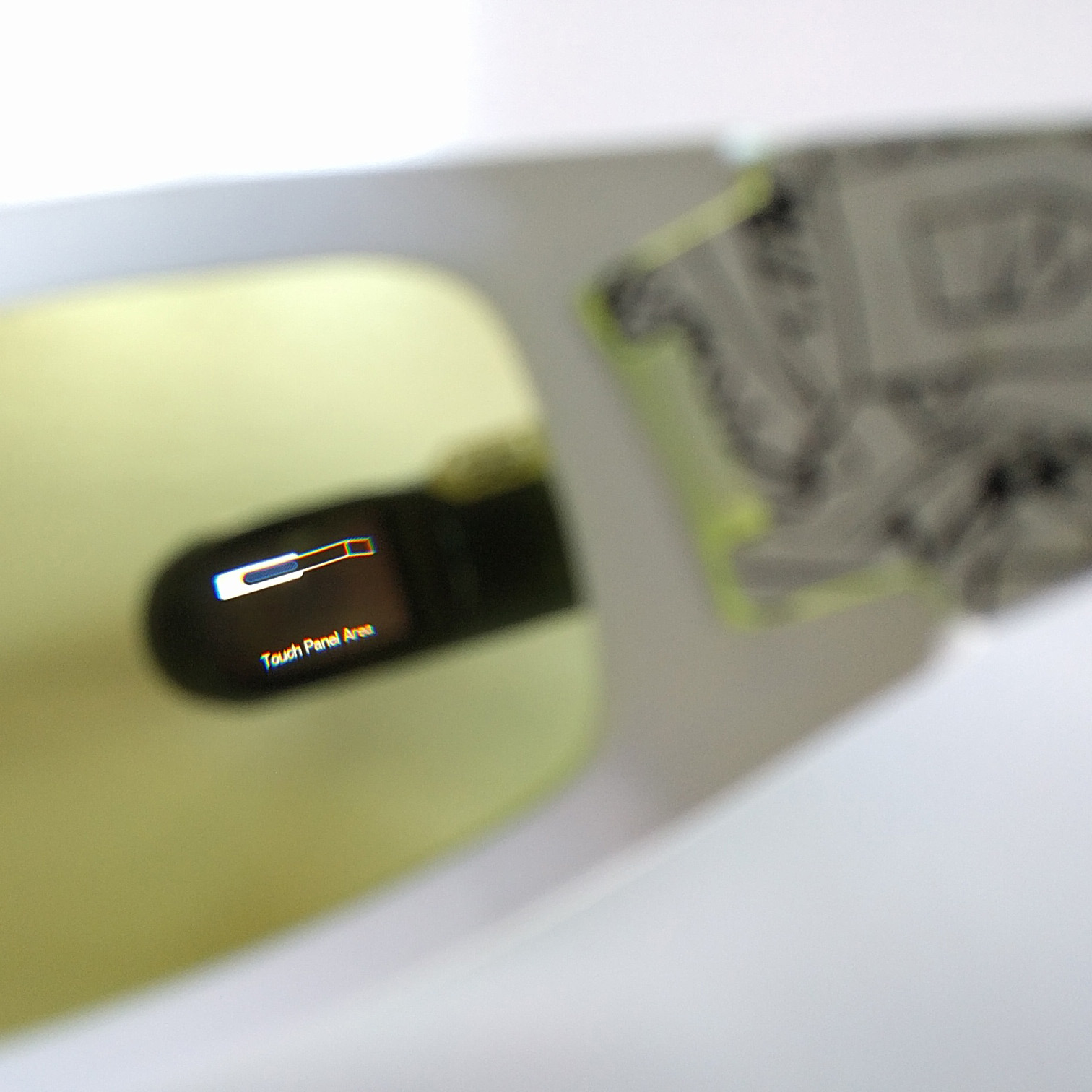 Um das Vision auf die Brille zu montieren, gibt es eine kleine Brillenhalterung, die man mit 2 Gummis am Bügel seitlich befestigt. Dabei ist es egal, ob links oder rechts, denn das Vision funktioniert dank Lagesensor immer richtig.